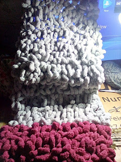 I particularly enjoy making scarves like these two below because they are unique, look rather strange and I can easily make use of extended stitches .